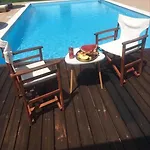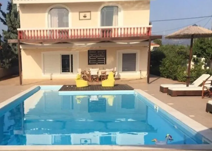 100 m^2 daire, Eleftherios Venizelos havalimanına 120 km yakınlıkta bulunmaktadır. Misafirler, özel yüzme havuzuna dalabilir. Evenik dairesi, misafirlerin konforu için masa oyunları, oyun alanı gibi olanakları sunar. Plaj olanakları arasında dinlenme koltukları, güneş şemsiyeleri mevcuttur.